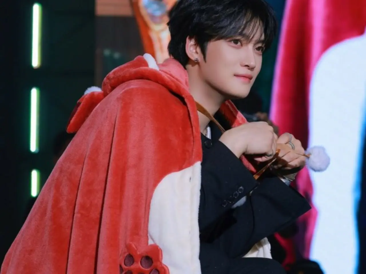 ฉันโพสต์รูปพร้อมแถลงการณ์ด้วย ในภาพแสดงให้เห็น J-JUN นั่งอยู่บนเวทีโดยสวมชุดคลุมสัตว์