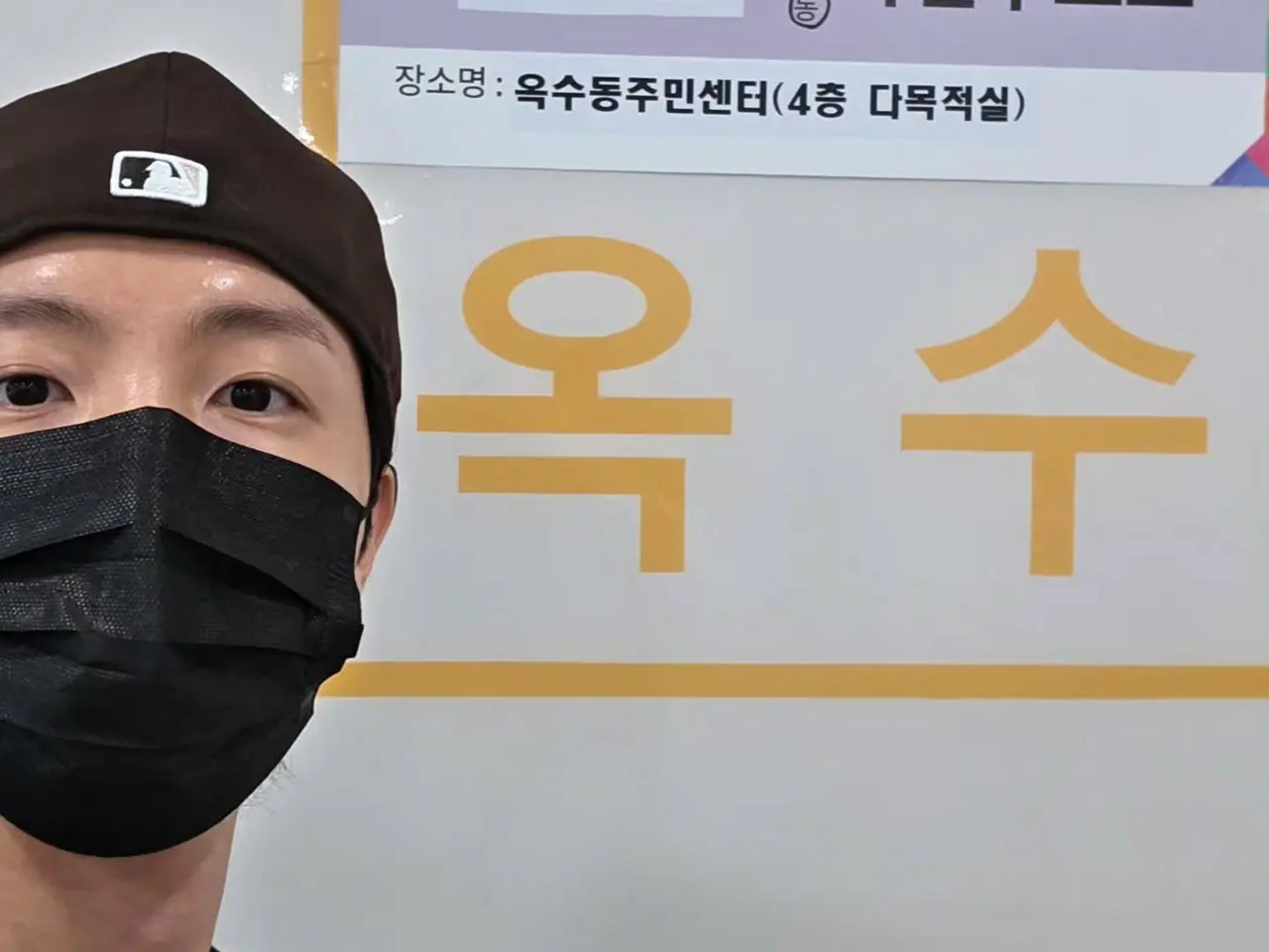 ภาพถ่ายยืนยันตัวตน โดยมีสถานีลงคะแนนล่วงหน้าที่ศูนย์ชุมชน Oksu-dong เป็นฉากหลังนั้นสะดุดตา ขณะเดียวกัน การลงคะแนนเสียงล่วงหน้าสำหรับการเลือกตั้งประธานาธิบดีครั้งที่ 21 ของเกาหลีใต้จะจัดขึ้นเป็นเวลา 2 วัน คือวันที่ 29 และ 30