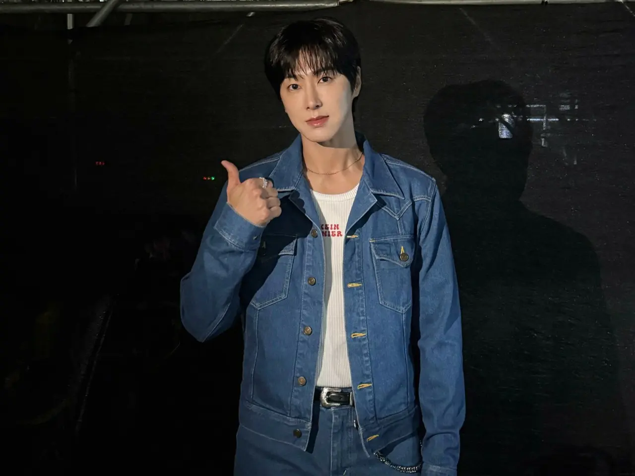 มีการโพสต์รูปภาพพร้อมคอมเมนต์และแฮชแท็ก "#TheKShowtime" ในภาพ ยุนโฮ (U-KNOW) ดูเท่ในสไตล์เดนิมทับเดนิม