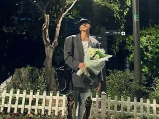 ในภาพเขานั่งอยู่ที่โต๊ะที่ประดับด้วยดอกไม้กับรอน ซึงมิน Stray Kids, NEXZ และคนอื่นๆ นิชคุณ (2PM) เขียนว่า "สุขสันต์เทศกาลชูซอก"