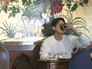 ที่ร้านกาแฟที่มีบรรยากาศแบบโบราณ มินโฮกำลังเพลิดเพลินกับการจิบกาแฟและผลิตภัณฑ์ดูแลคอ