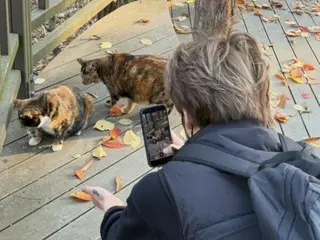 ภาพดังกล่าวยังแสดงให้เห็นเขากำลังถ่ายรูปแมวที่เขาพบในภูเขา สร้างบรรยากาศที่อบอุ่นหัวใจ